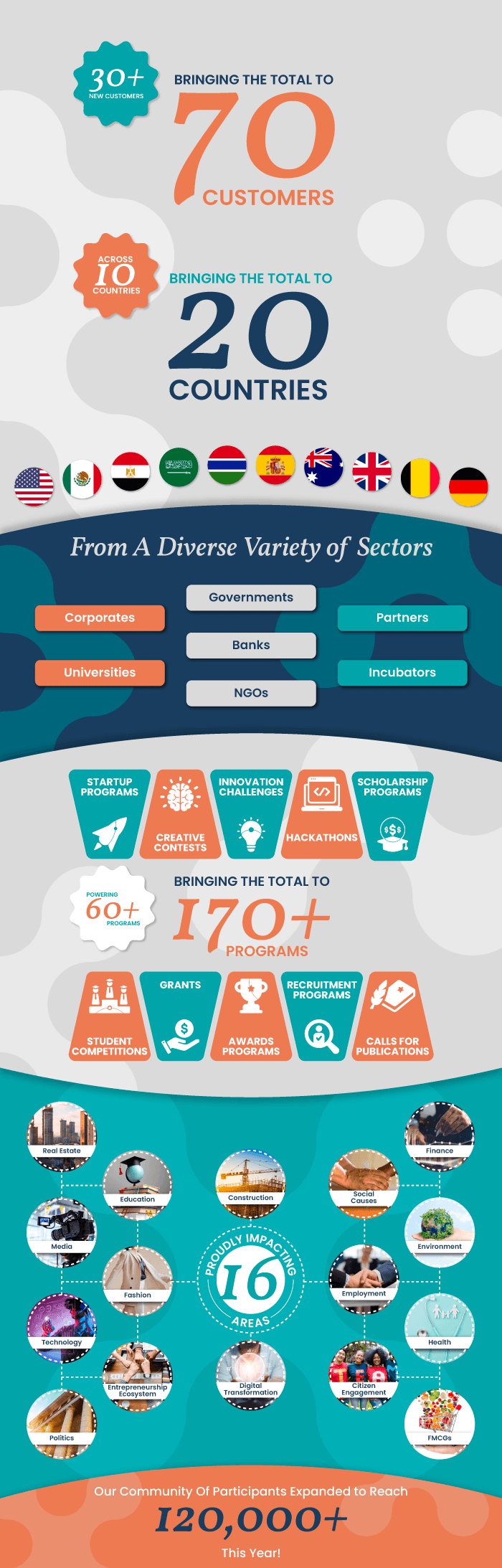 2022 has also been generous when it came to the programs powered on our platform. We are proud that our programs aren’t just numbers; each program made a huge impact and had a unique purpose. Those programs allowed us to leave a stamp in different sectors, whether by generating ideas and solutions or by discovering new talents who are worthy of an opportunity to shine.